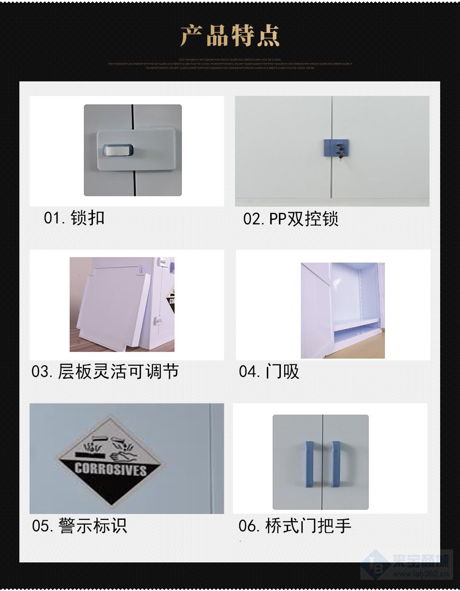 OLB系類強酸強堿存儲柜,特別針對強腐蝕性化學品的存儲和防滲漏而設計,PP藥品柜使用存放具有強腐蝕性的化學品物質(例如硫酸、鹽酸、KOH、NaOH等化學品物質)。