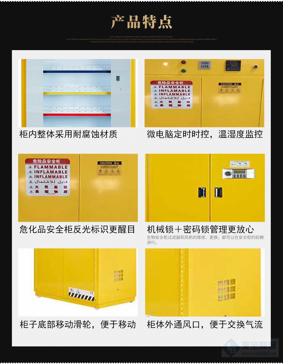 2、易燃品毒害品儲(chǔ)存柜體內(nèi)膽(上,下、左、右內(nèi)襯板)全部采用實(shí)芯理化板或pp(聚丙烯樹脂)板;
