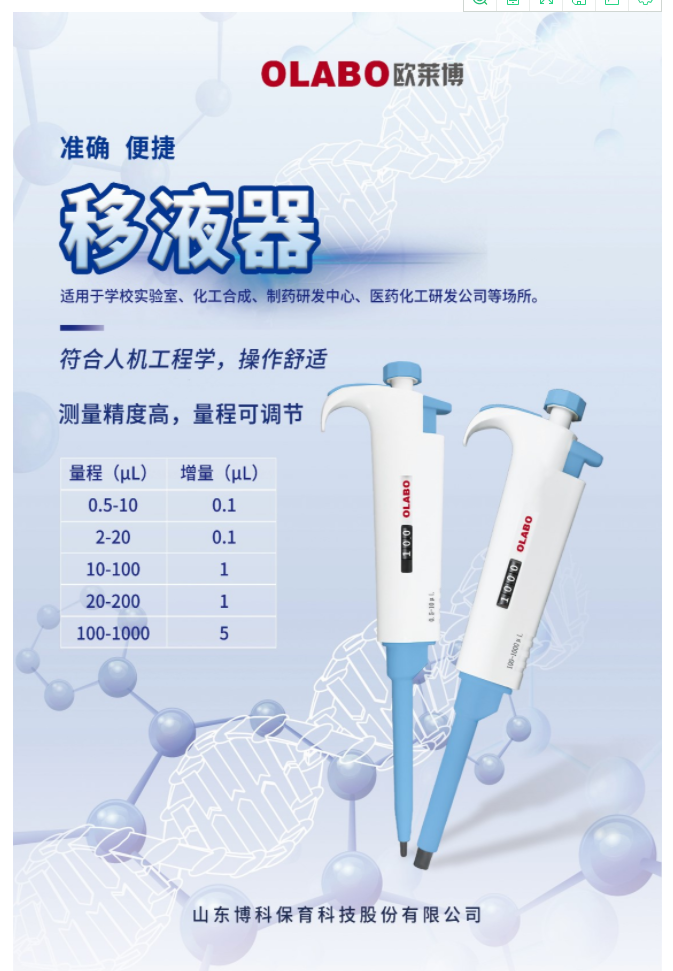當前位置 > 首頁 > 產品中心  > 樣品處理 > 移液器> 國產OLABO,B系列單道可調式移液器20-200μl