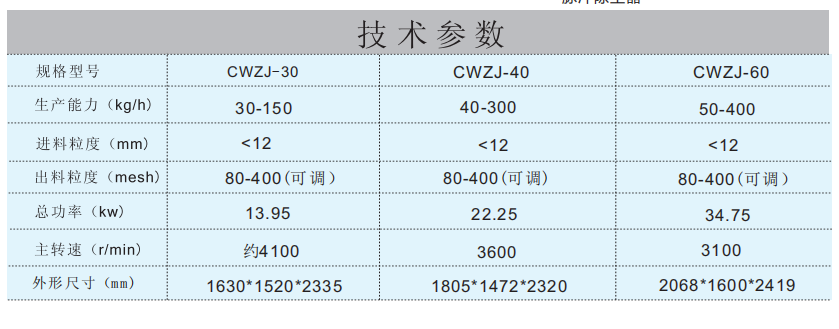 CWZJ-30超微機(jī)組高精度超微粉碎,超微粉碎機(jī),無篩無網(wǎng)。