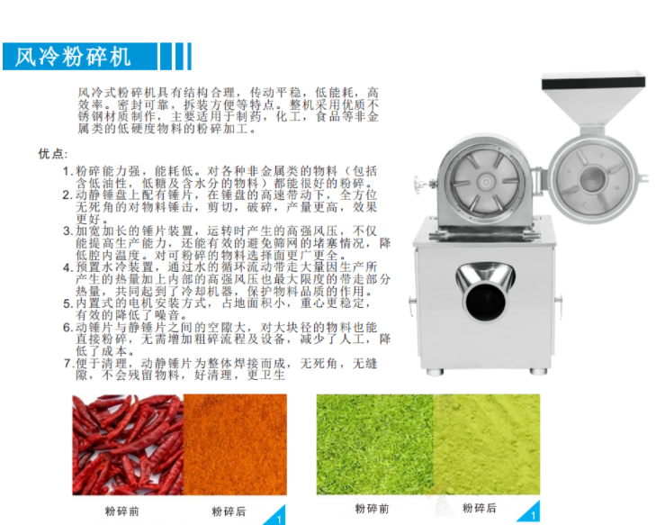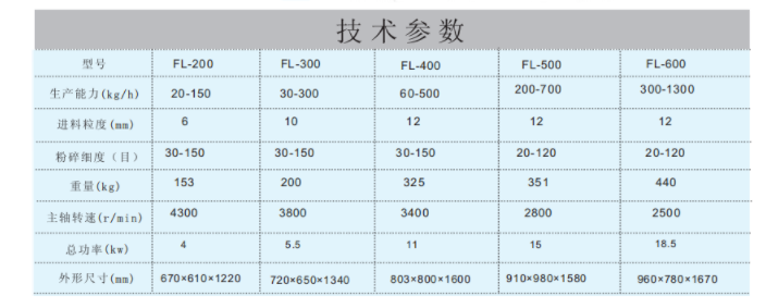 FL-200風(fēng)冷粉碎機(jī)結(jié)構(gòu)合理,傳動(dòng)平穩(wěn),低能耗,高效率,拆裝方便。
