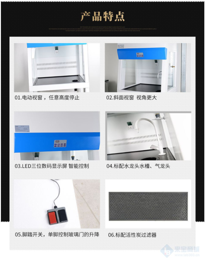 * 13、通風(fēng)柜配置活性炭過(guò)濾器,可吸附多數(shù)實(shí)驗(yàn)氣體。